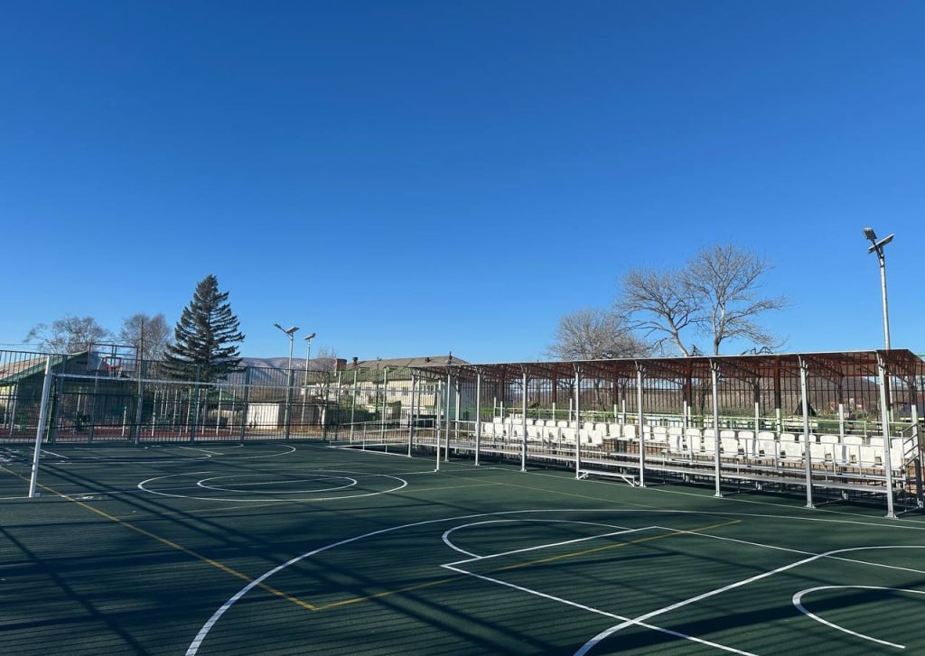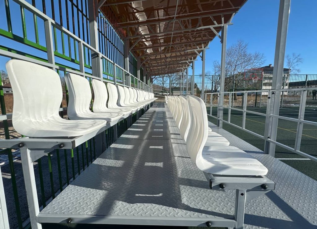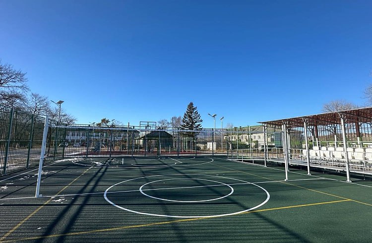 Отдельное внимание уделено игровым видам спорта. Площадка подготовлена для игры в футбол, баскетбол и волейбол. Спортобъект можно использовать круглый год. Для зрителей предусмотрена сборно-разборная трибуна, а периметр площадки ограждён