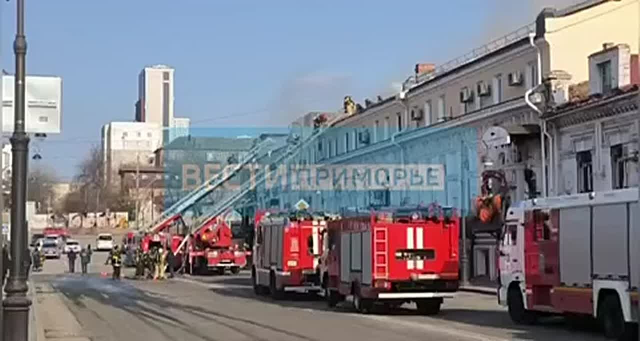 Огнеборцы МЧС России ликвидируют возгорание административного здания во Владивостоке