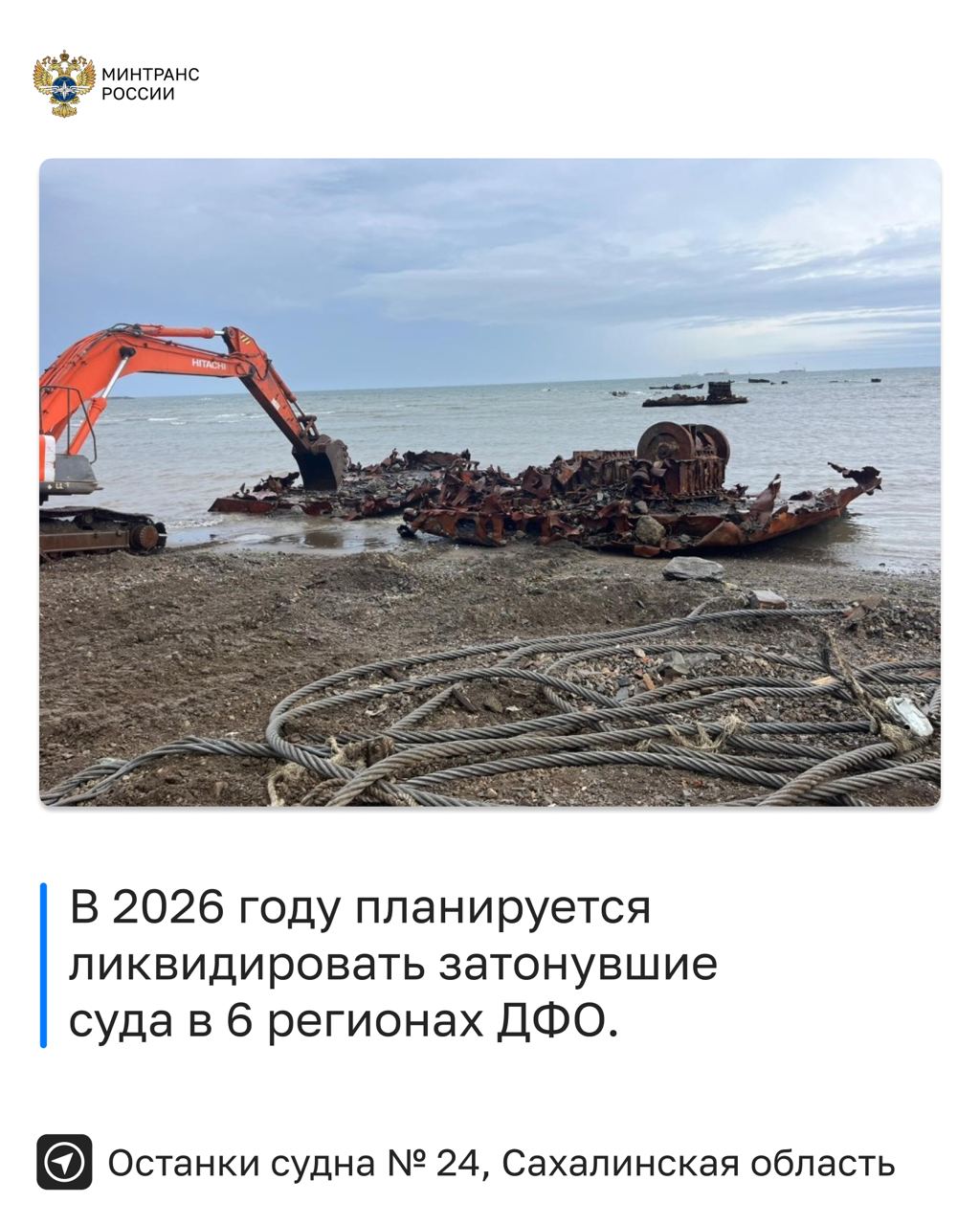 В 2026 году работы продолжатся в Камчатском и Приморском краях, Сахалинской и Магаданской области, Чукотском автономном округе и Республике Саха (Якутия). С 2022 по 2024 годы в рамках проекта уже ликвидировали 213 затонувших судов в акватории ДФО.