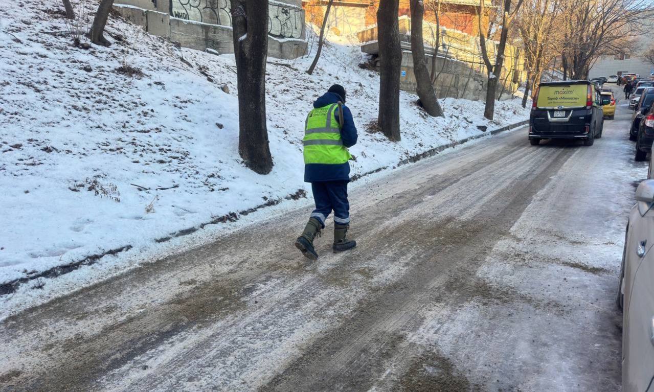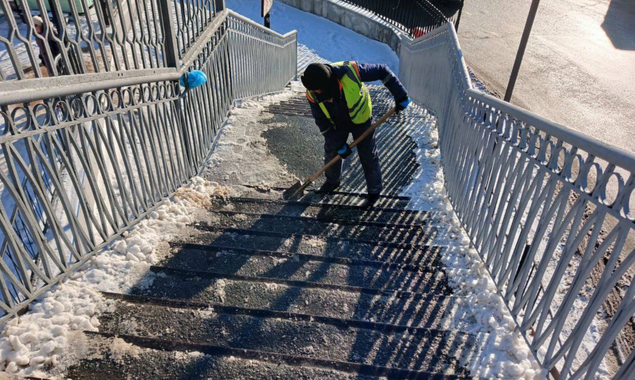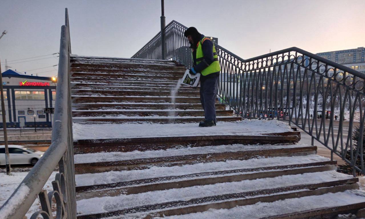 Особую сложность представляла очистка пешеходных зон, где применение техники было невозможно. Здесь дорожникам пришлось работать вручную, посыпая лед реагентами и сбивая наледь. Этому отчасти способствовала и сама погода: в периоды потепления лед подтаивал, образуя шугу, которую бригады оперативно убирали, не давая ей снова замерзнуть.
