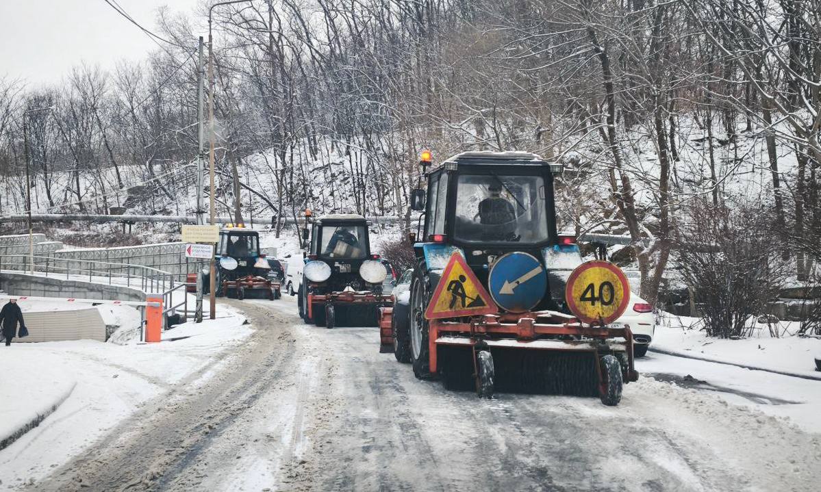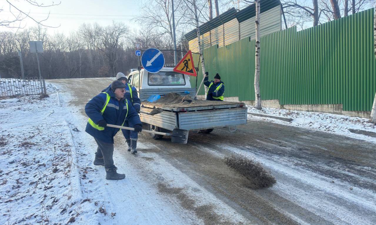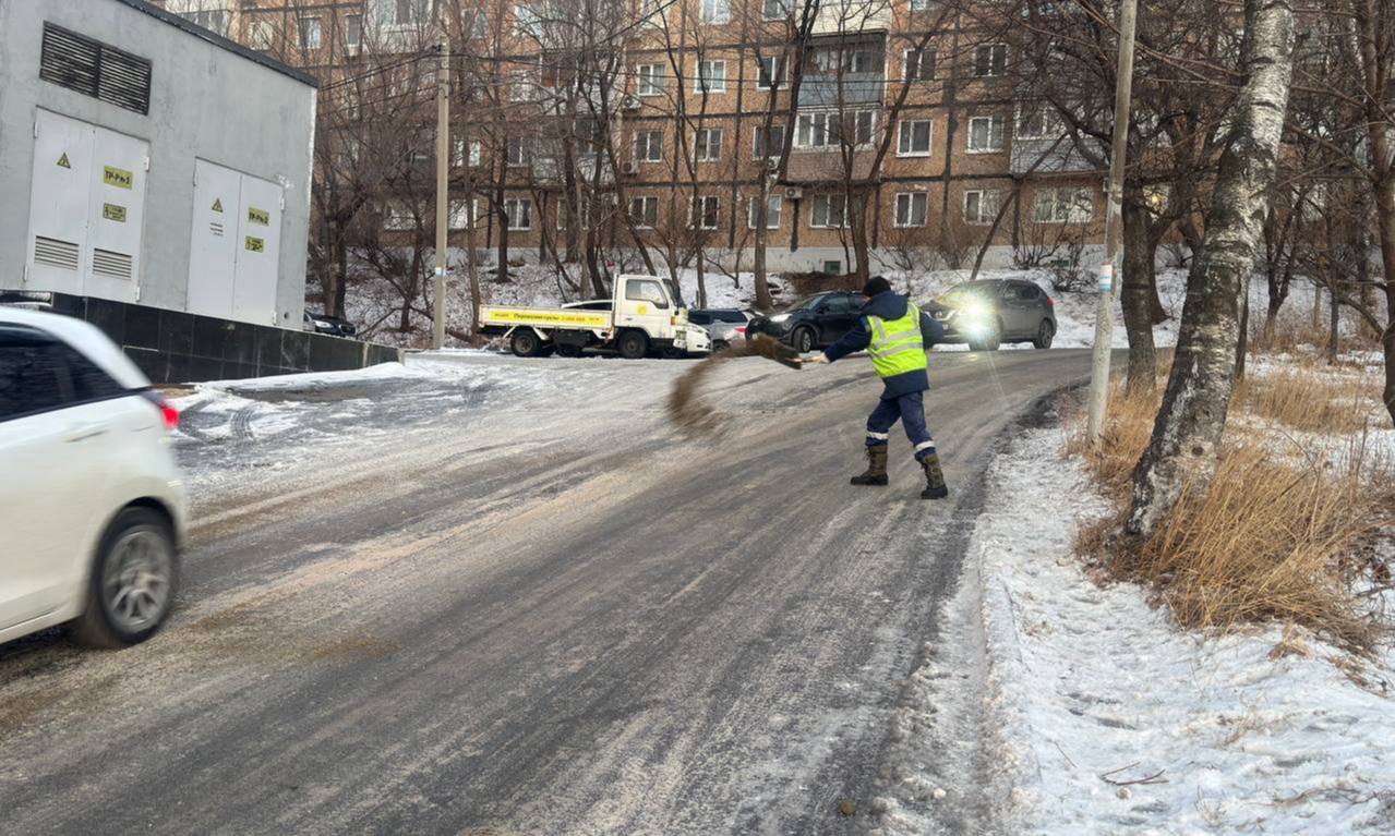 1 В первую очередь бригады вышли на расчистку и обработку ключевых магистралей, опасных спусков и подъемов.