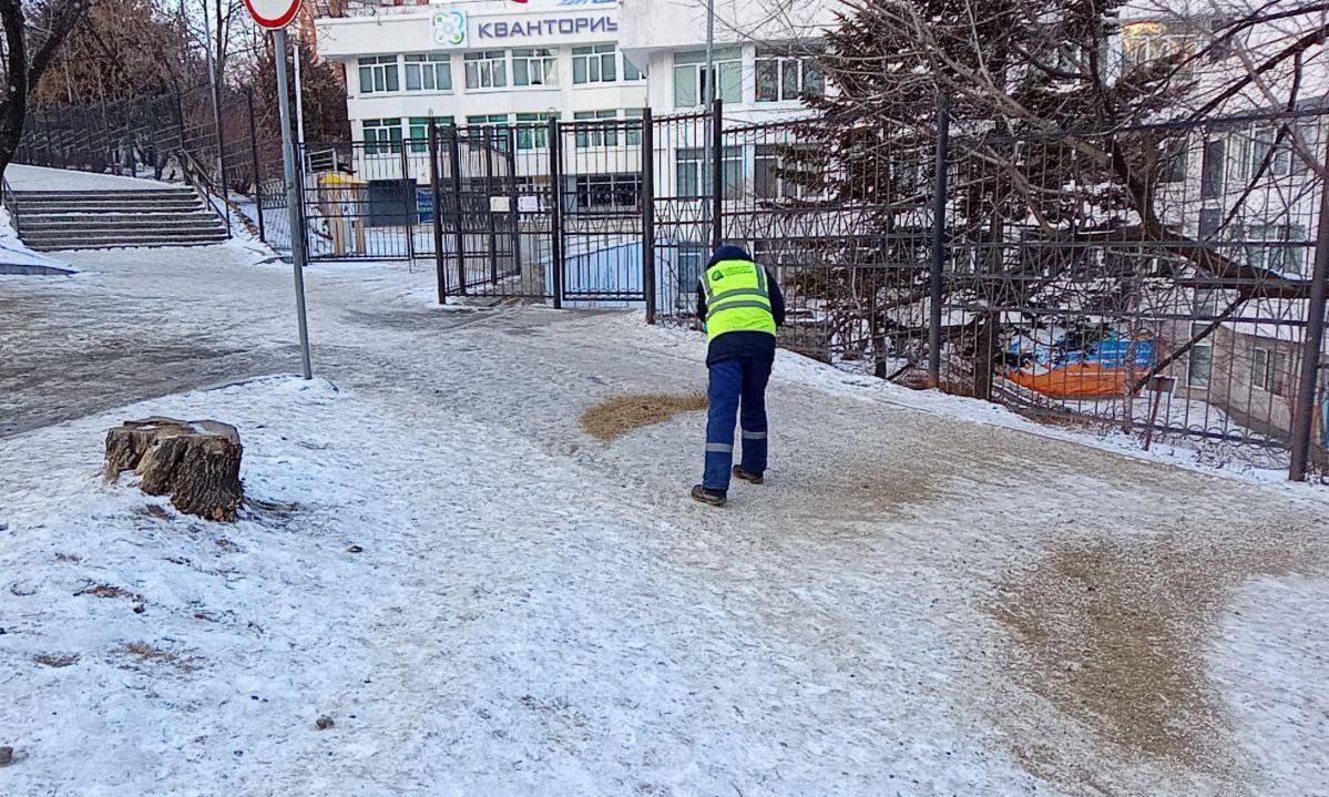 На прошлой неделе, 23 декабря, во Владивостоке начался ледяной дождь. Муниципальное предприятие «Содержание городских территорий» с первых часов ухудшения погодных условий было переведено в режим повышенной готовности, и в настоящее время продолжаются плановые работы по ликвидации последствий осадков.