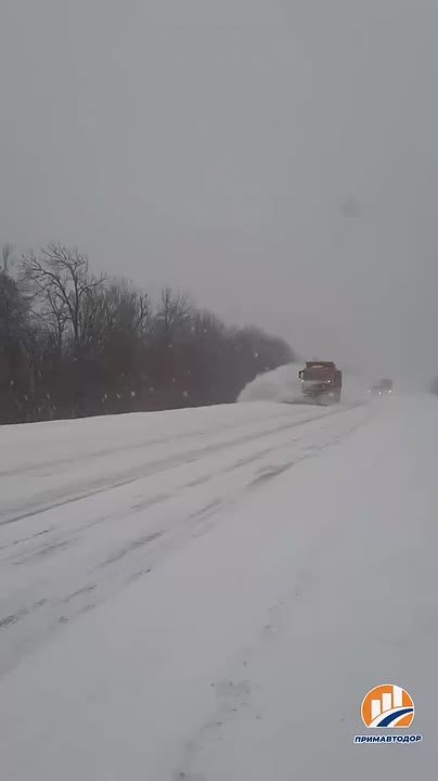Ведем снегоуборку и обработку проезжей части с 23 по 70 километры дороги Артем – Находка – порт Восточный