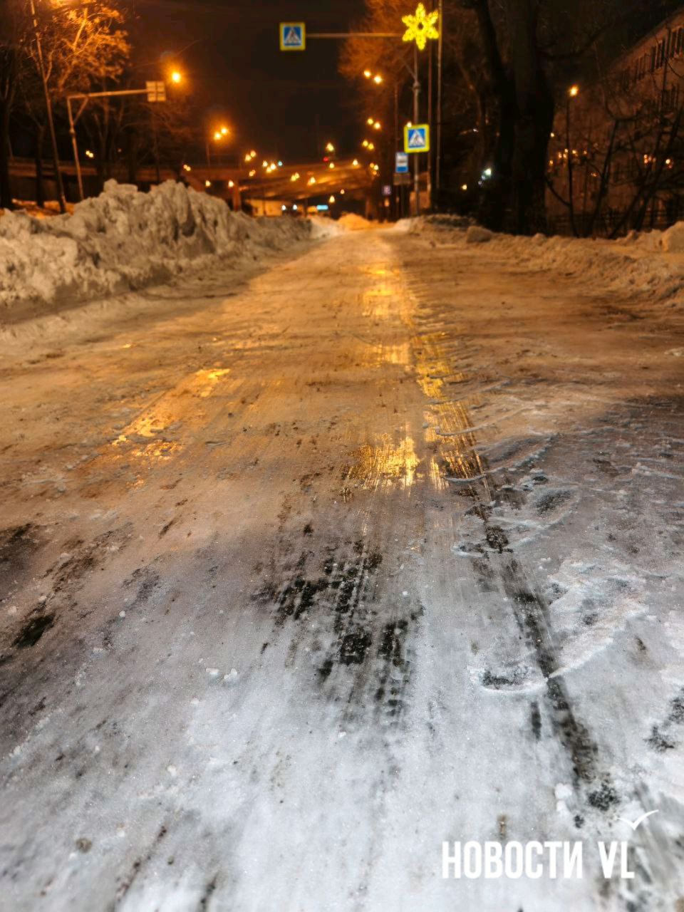 Наша читательница сообщает, что почистили дорогу от снега. Только вот под ним оказался слой льда. Автомобилистам нужно быть аккуратнее.