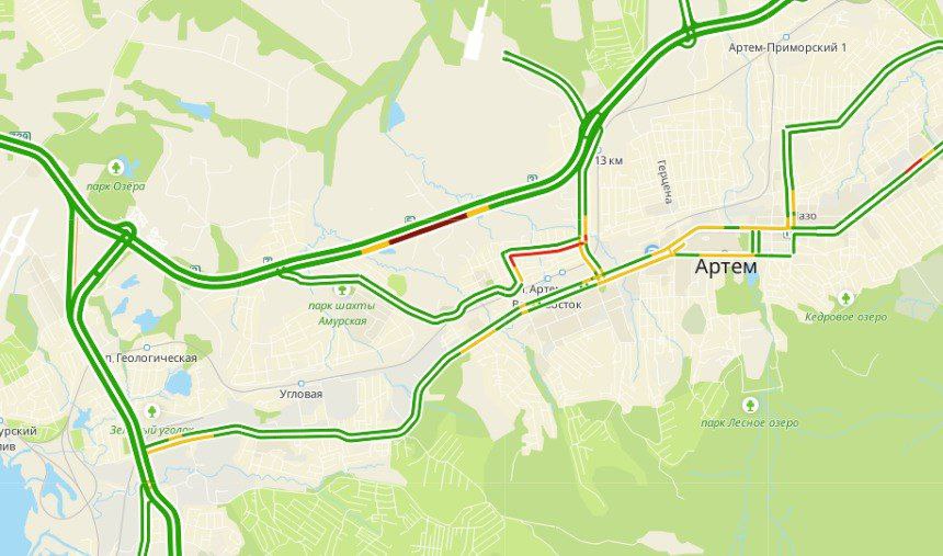 Две полосы в сторону аэропорта оказались перекрыты. Обехать можно через Артём. Собралась большая пробка.