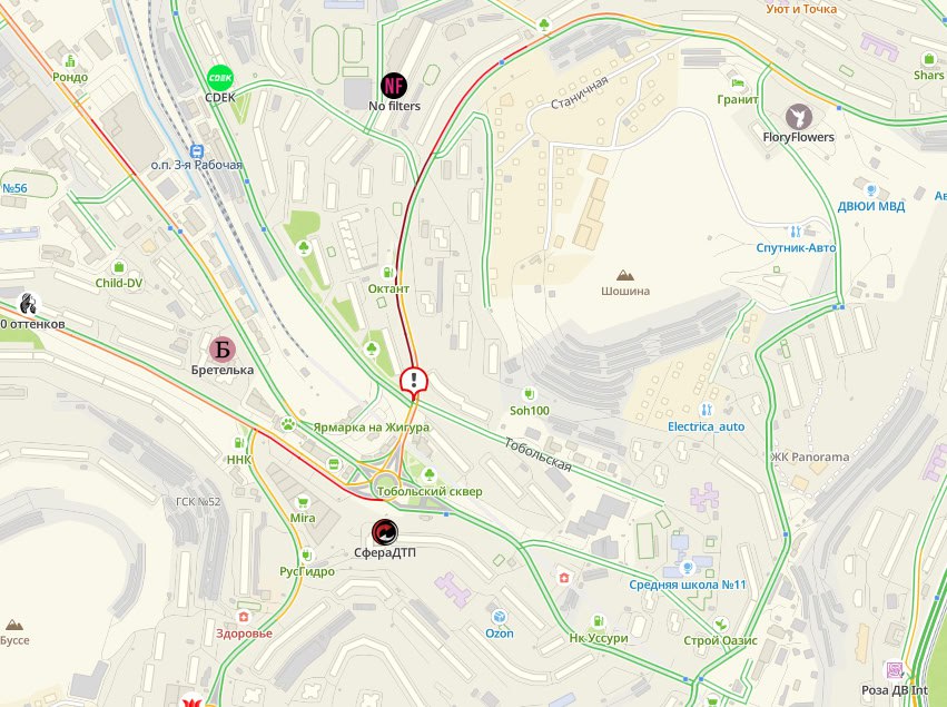 В районе перекрёстка Аллилуева, Жигура и Тобольской со стороны Котельникова собралась пробка. Водители жалуются, что движение тормозит светофор, но сейчас основная причина затора - припаркованный автомобиль на спуске.