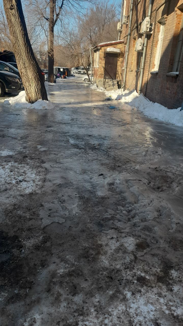 Жители дома № 41 на улице Алеутской бьют тревогу: с 5 декабря их двор превращается в ледяное озеро. Вода хлещет прямо из подвала, а в это время в самих квартирах практически отсутствует холодное водоснабжение.
