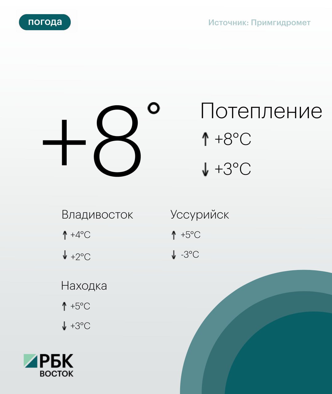 Во Владивостоке переменная облачность, без осадков. Ветер южный умеренный. Температура воздуха +1...+3°C.