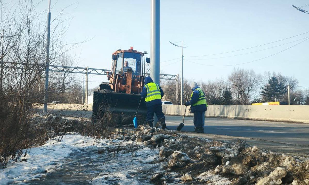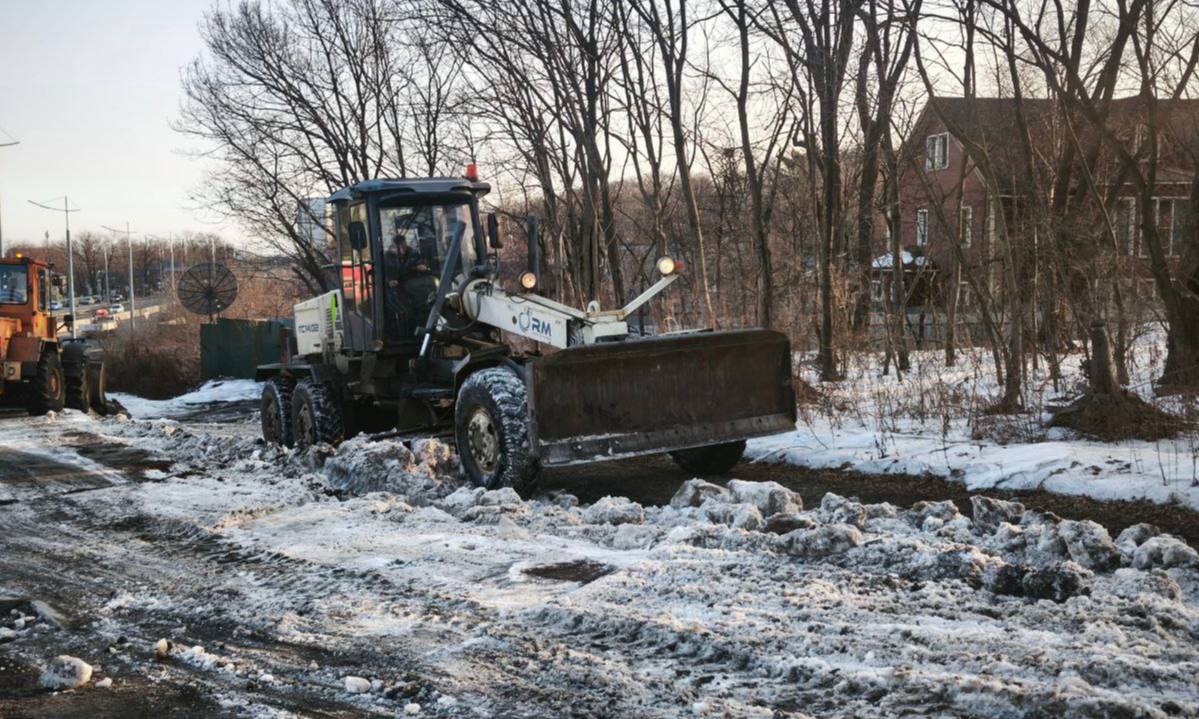 Русский остров — ручная уборка снега на Университетском проспекте; грейдирование дороги на участке Шигино – Воевода.
