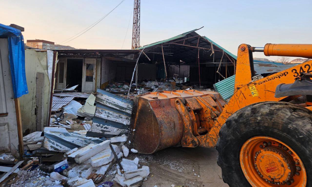 Демонтажные бригады разбирают и вывозят объекты на Спортивной, 1в.