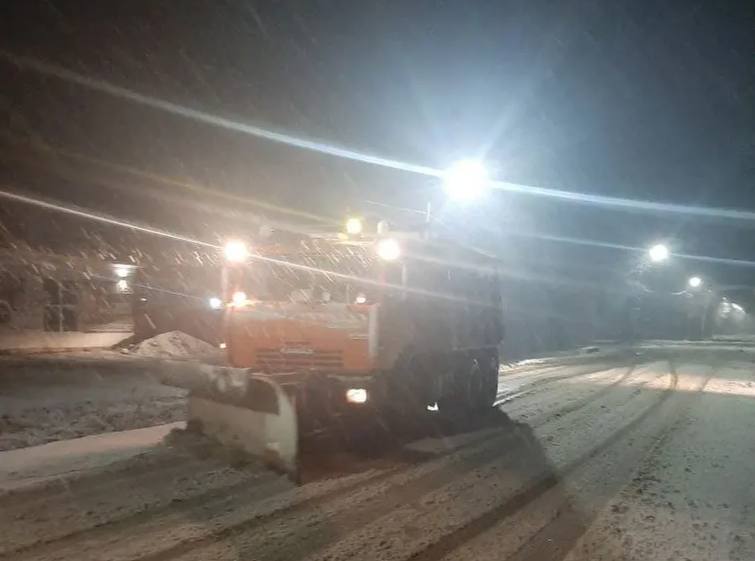 На краевых трассах работают свыше 100 единиц спецтехники Примавтодора. Специалисты продолжат работу в ночную смену, чтобы к утру проезжая часть была безопасней.