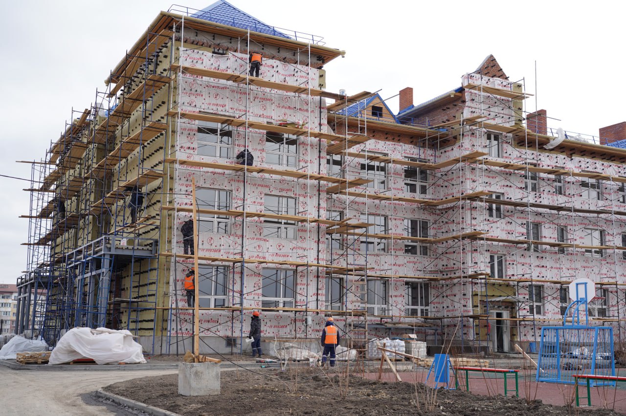 Активно завершаем и строительство детского сада в районе Междуречья. Параллельно выполняются наружные и внутренние работы: утепляется фасад, обустраивается ограждение, монтируются коммуникации, ведется стяжка пола. На работе трудятся порядка 60 человек.