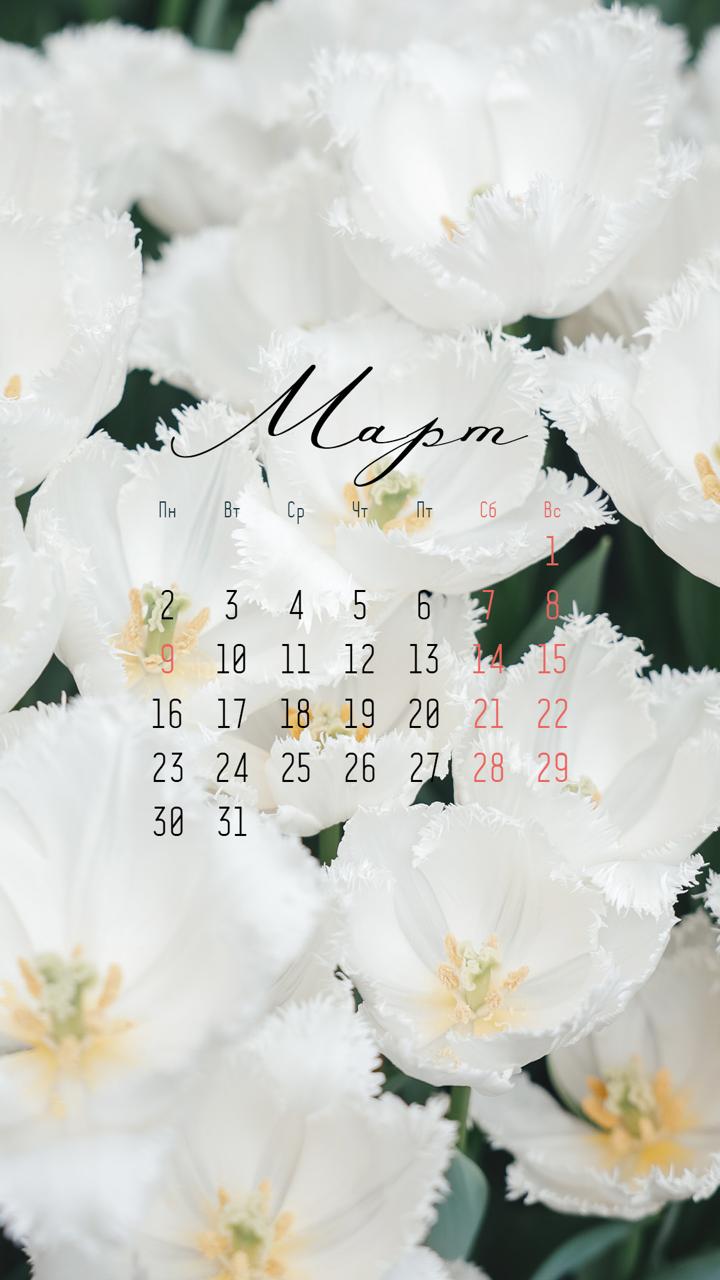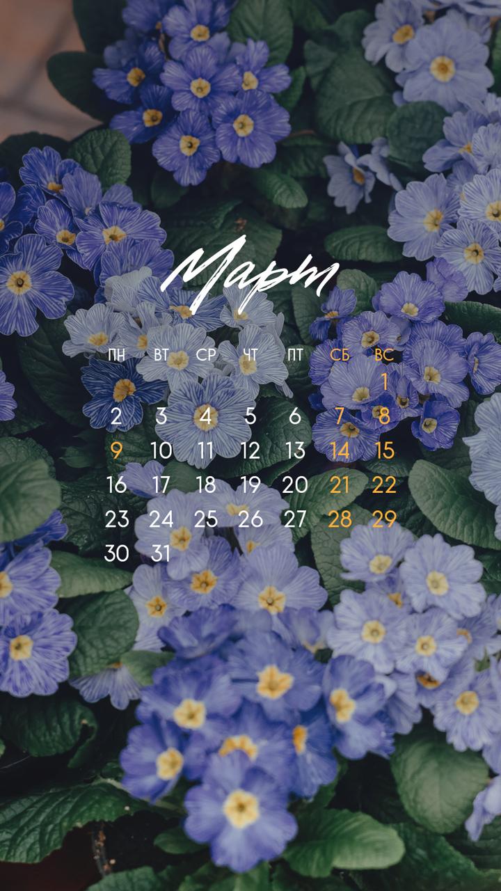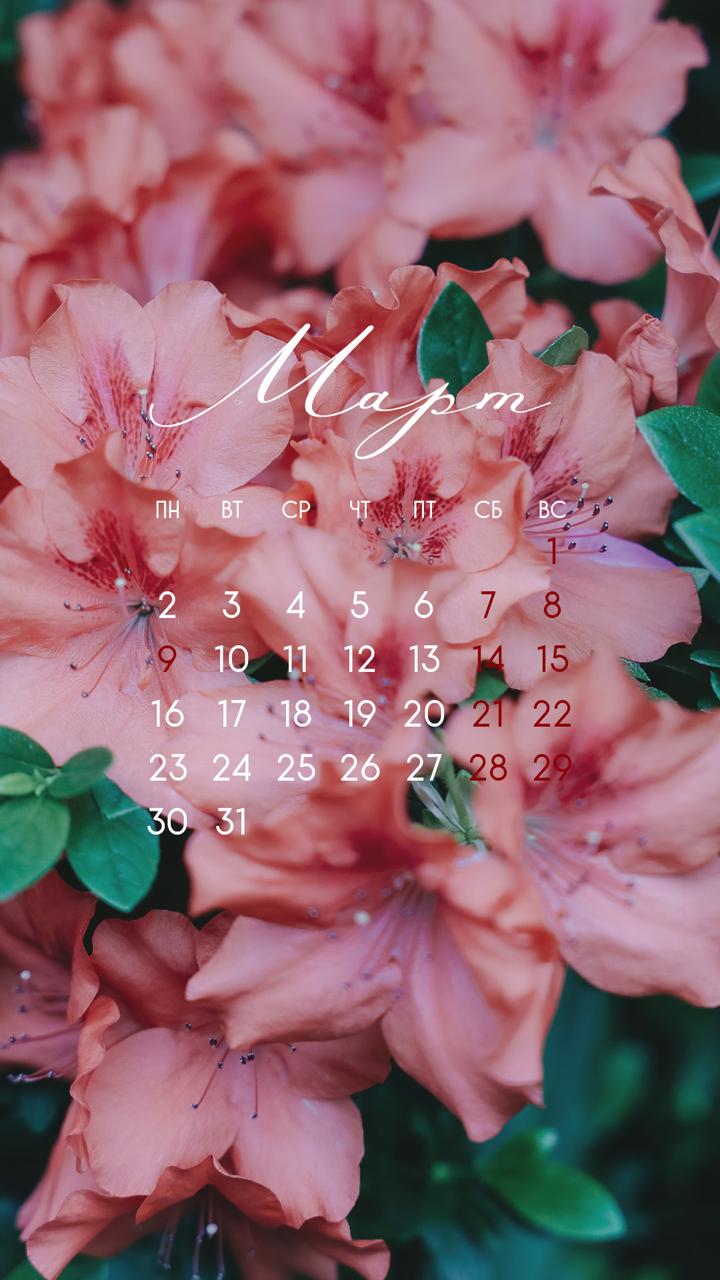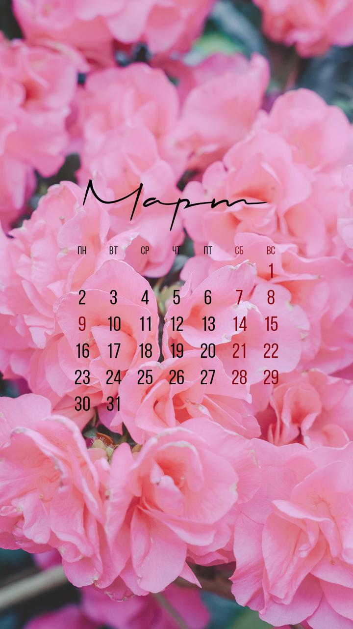 Друзья, встречайте март с новой порцией красоты! Мы подготовили для вас свежие календари-обои для телефонов, и все они — с живыми цветами