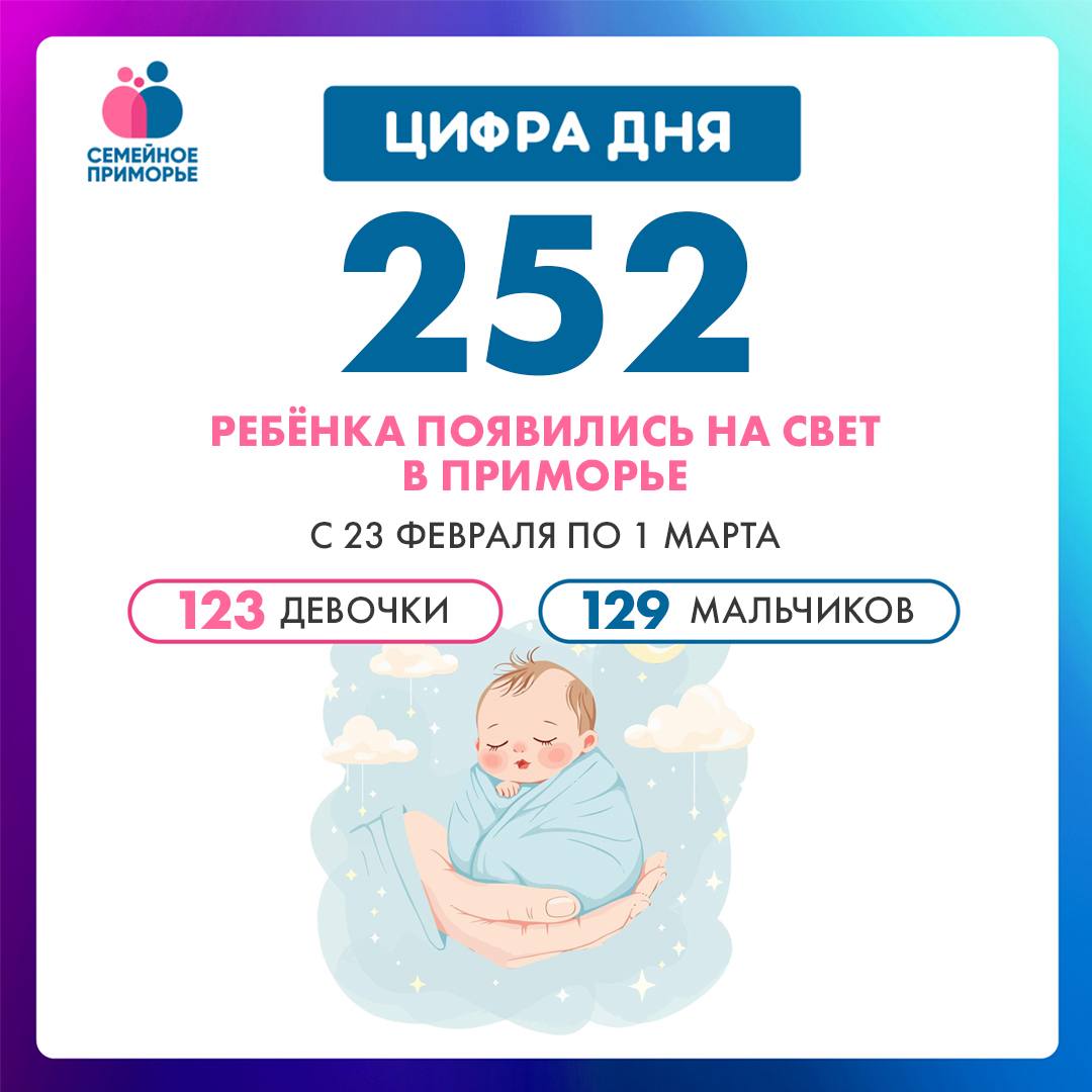 В Приморье с 23 февраля по 1 марта появилось на свет 252 малыша! Одним из ярких событий стало рождение «королевской» двойни: в одной семье одновременно родились мальчик и девочка.