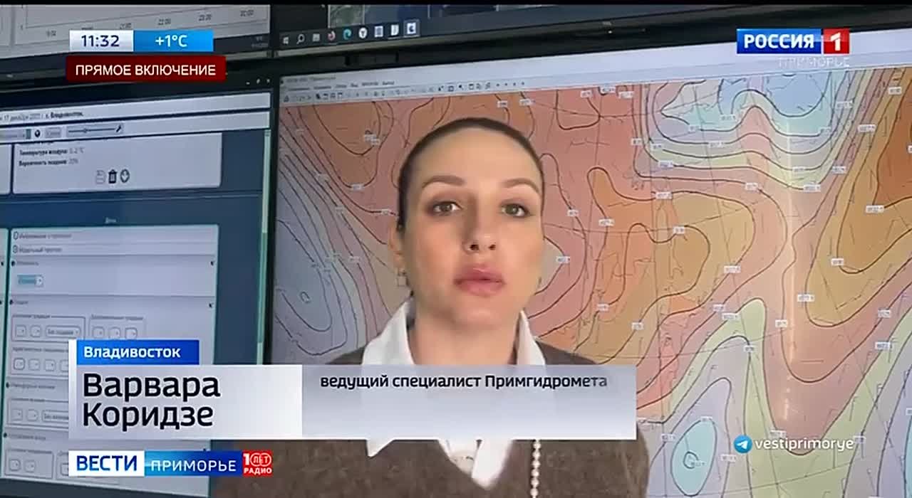 Утром и днём местами небольшие осадки (снег, мокрый снег). Ветер южный умеренный Температура воздуха ночью -11...-16°C, в отдельных районах -2...-7°C, на северо-востоке -17...-22°C, днём +2...+7°C, при осадках около 0°CВо Владивостоке облачно, ночью...