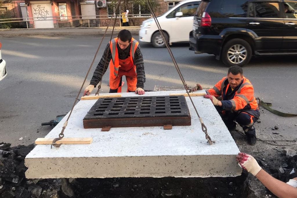 Администрация Владивостока ищет подрядчика для ремонта просевших люков на дорогах.