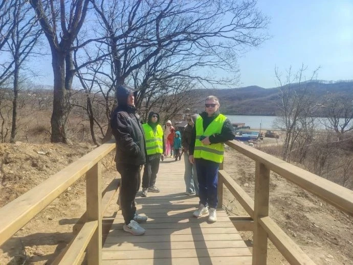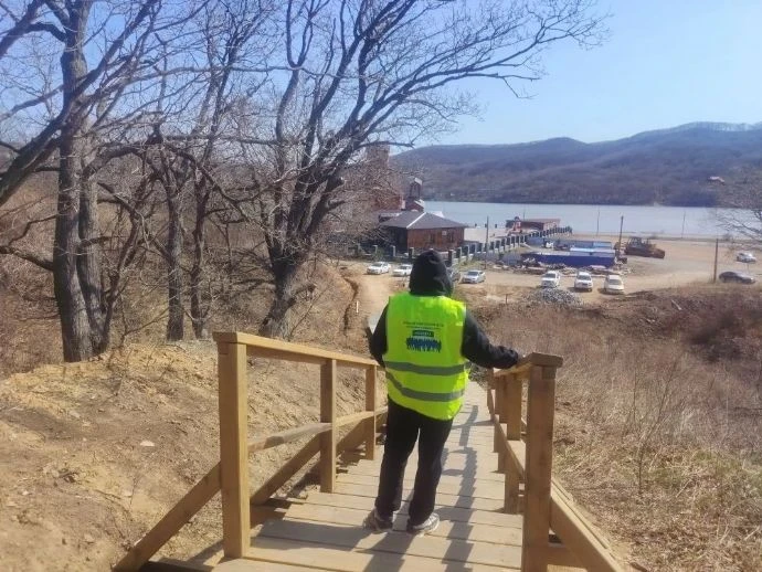 Общественные наблюдатели Находки проинспектировали ход строительства туристического маршрута «Тропа осьминога» (от бухты Прозрачной до бухты Козина). В настоящее время подрядчик приступил к работам по обустройству входной зоны со стороны бухты Прозрачная (пляж «Рица»).