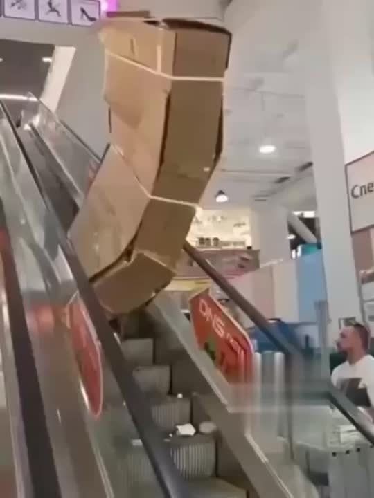 Коробка не уместилась при спуске на эскалаторе и прижала работника.На кадрах из соцсетей видно, как мужчина пытается доставить высоченную покупку на первый этаж. Коробка сжалась под потолком и "уложила" на эскалатор сотрудника. Телевизор до покупателя...