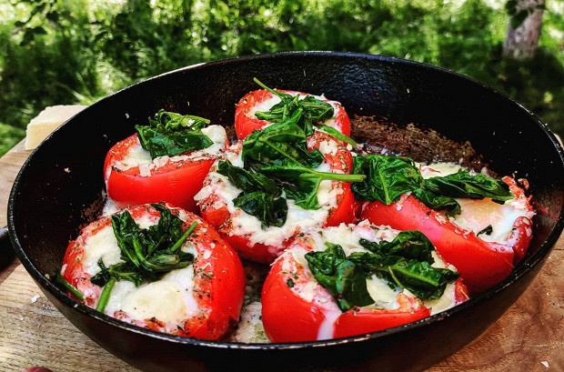 Важно выбрать именно спелые, но крепкие помидоры, чтобы они не потеряли форму во время запекания и могли красиво удерживать начинку. Вот, как быстро приготовить это восхитительное утреннее лакомство: