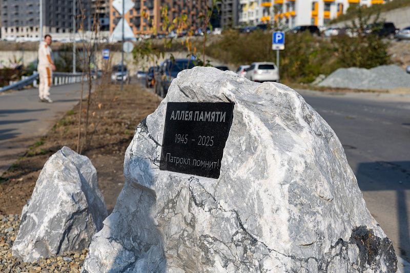 Тогда же был установлен и мемориальный камень, а 22 сентября на нем закрепили памятную табличку с надписью: «Аллея Памяти. 1945-2025. Патрокл помнит!».