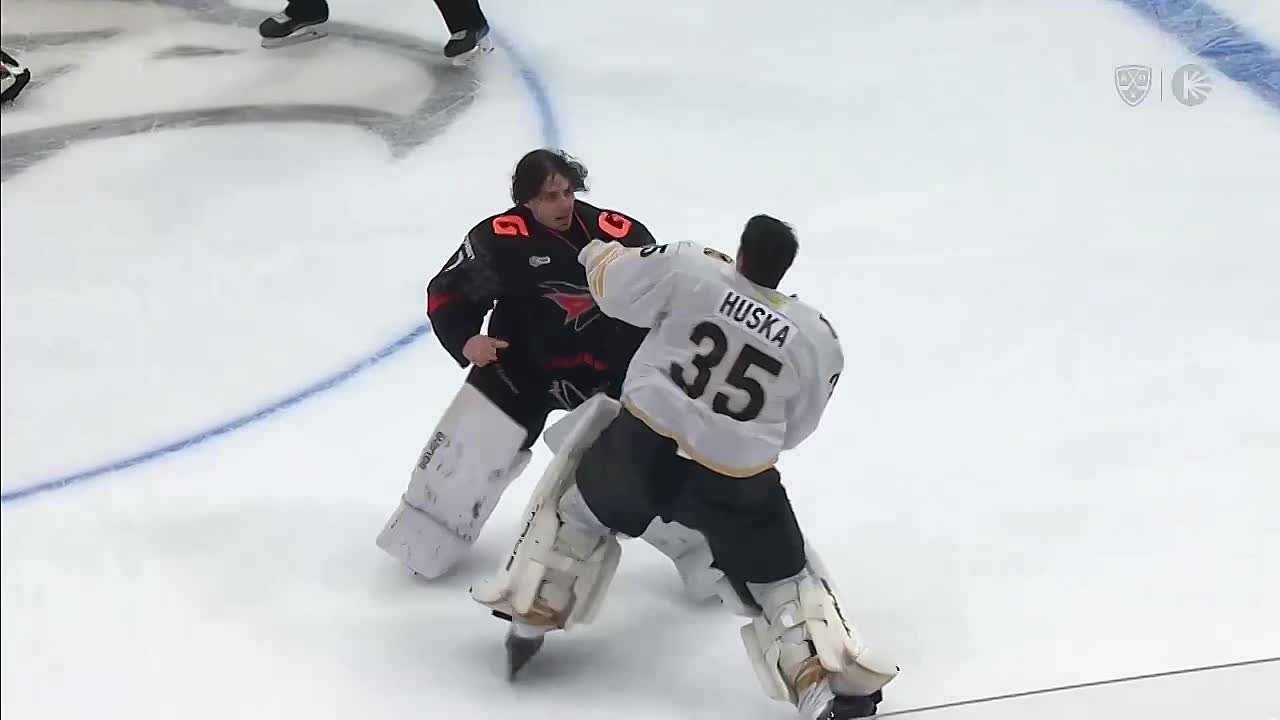 Редчайшее событие произошло в игре «Авангарда» и «Адмирала»: два вратаря устроили драку на льду посреди матча.