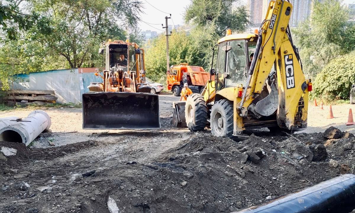 Сейчас работы ведутся на двух участках улицы Луговой – в районе дома №56 и возле поворота на улицу Горную.