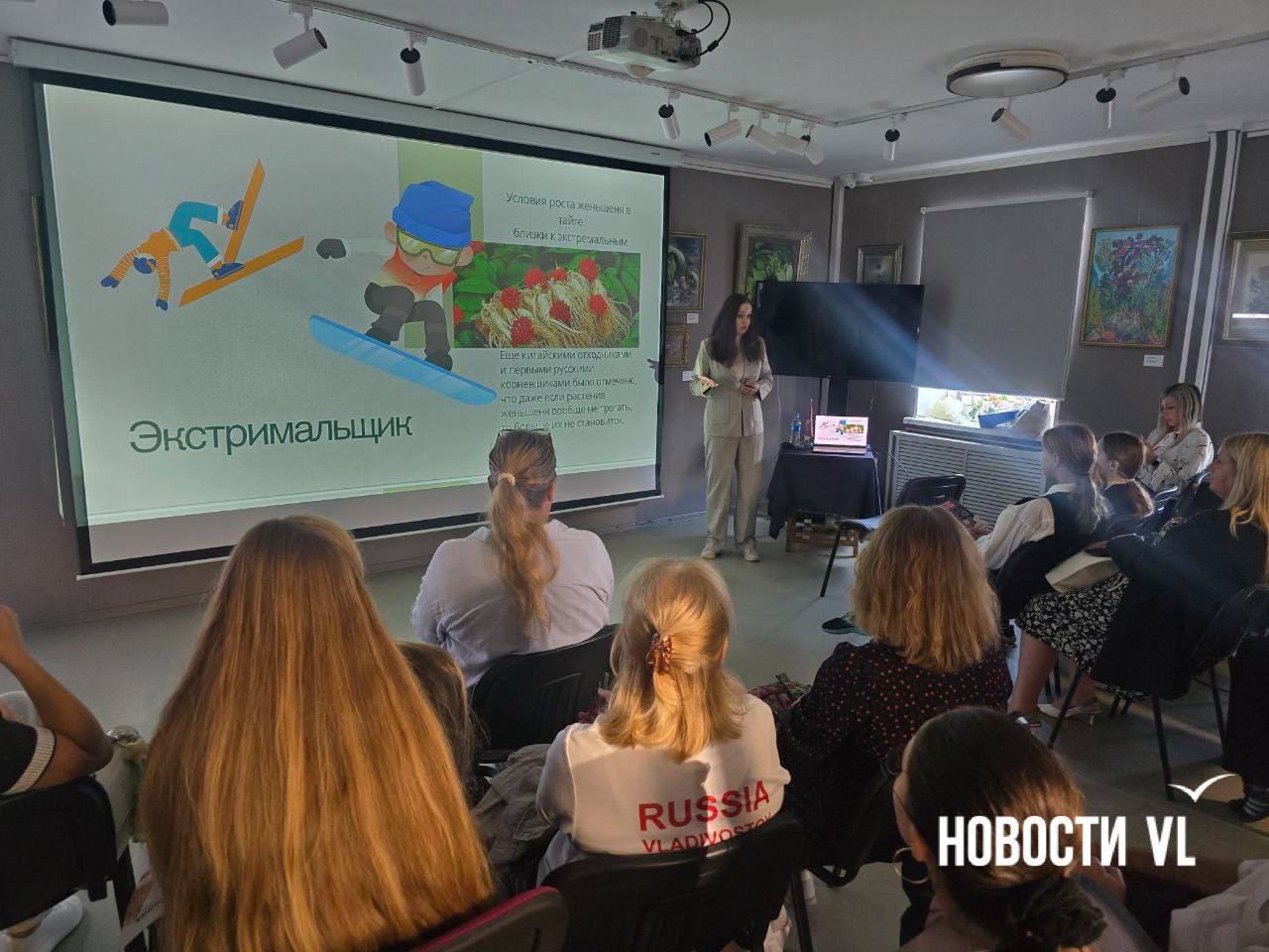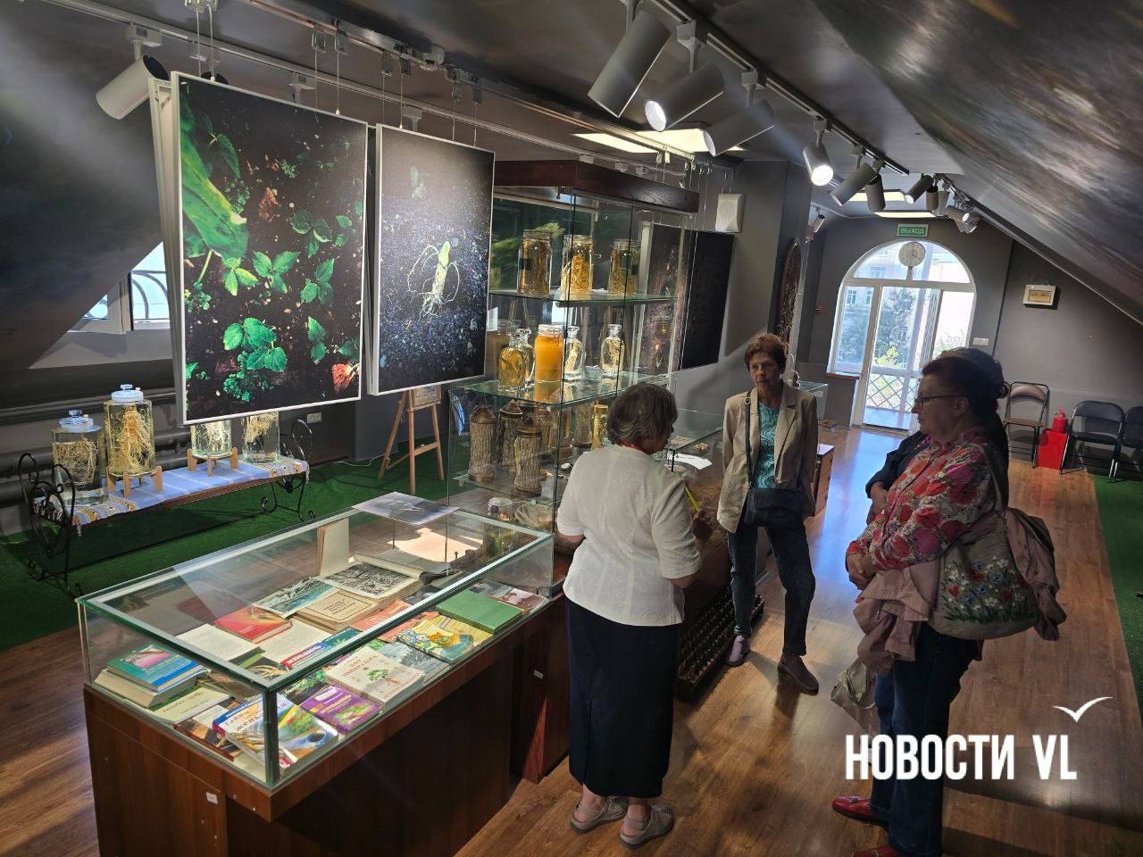 На всех пяти этажах комплекса проходят экскурсии - бесплатные по музею женьшеня, платные - по музею старинных русских самоваров. Работают лектории - в 12:00, к примеру, начали рассказывать об истории растения.