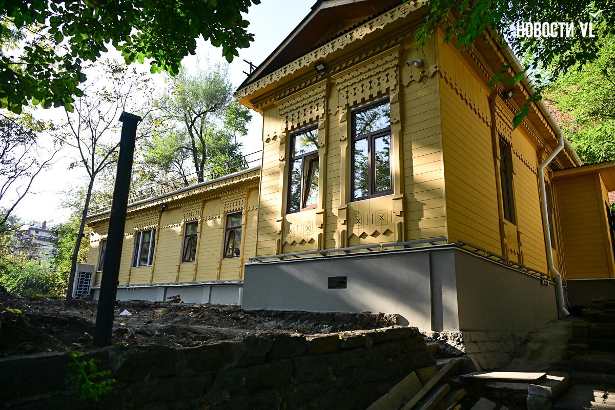 Во Владивостоке после капитального ремонта открылся краевой центр народной культуры. Здание на Пушкинской, 25 – памятник культурного наследия регионального значения. Одноэтажный деревянный дом построили в конце позапрошлого века. Он украшен резьбой в стиле сибирского зодчества. Его привели в порядок, а территорию вокруг закончат обустраивать в ноябре: заменят бетонную лестницу, разобьют сквер, отчистят и отреставрируют каменную подпорную стену.