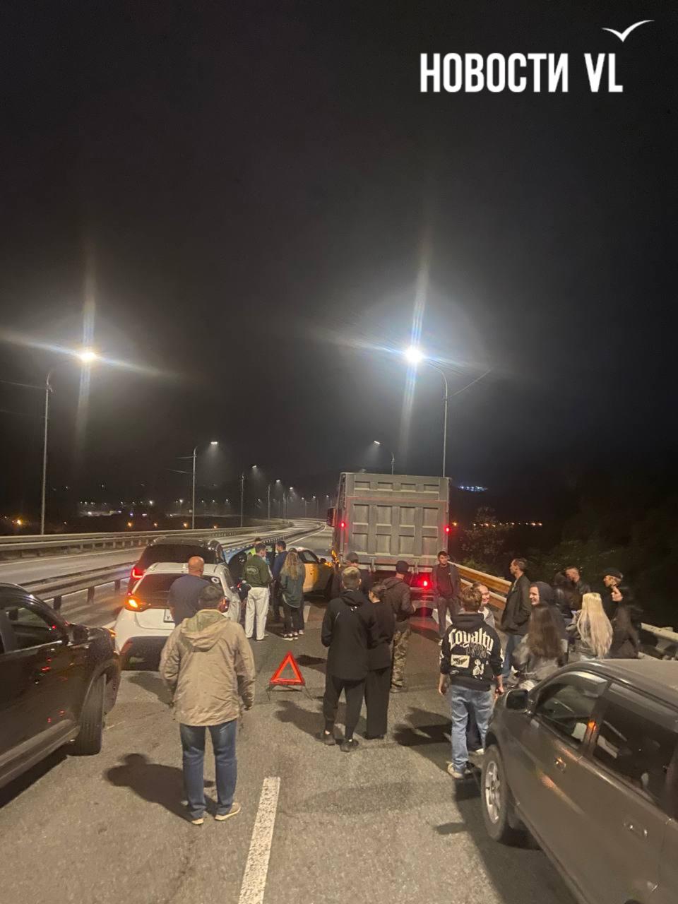 На объездной трассе в сторону острова Русского произошло ДТП у съезда на Снеговую. Движение заблокировано, уже час машины не могут проехать в сторону острова.
