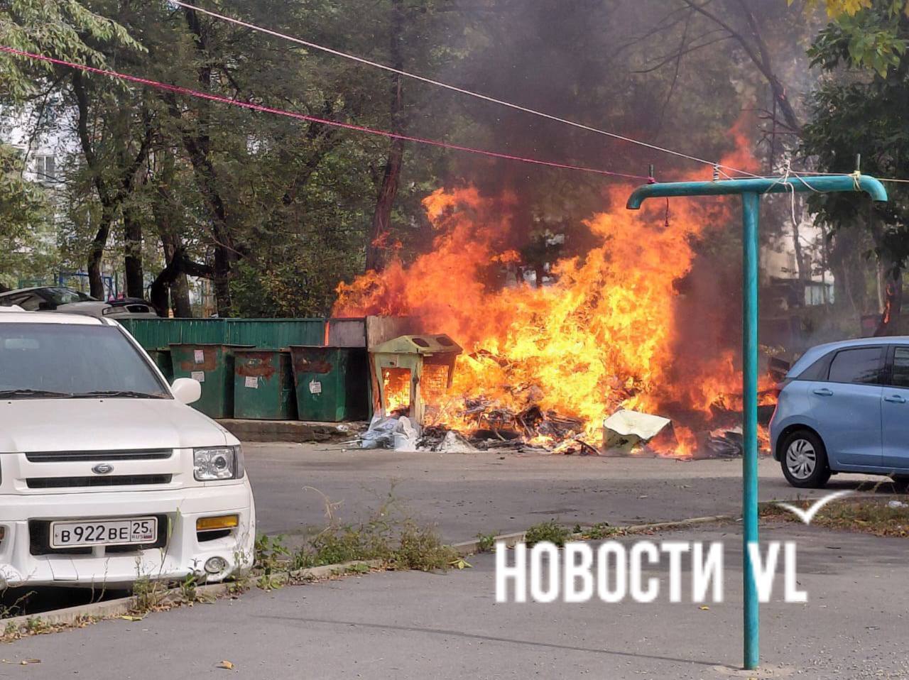 Наши юные читатели сообщают, что рядом с домом на проспекте 100-летия Владивостока, 62 горят мусор и сетка для раздельного сбора отходов. Пожарные уже работают на месте.
