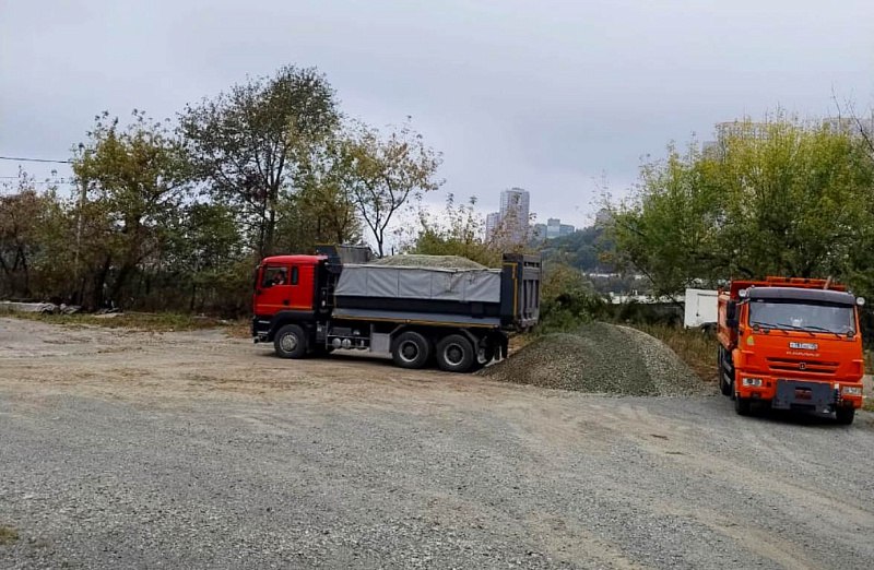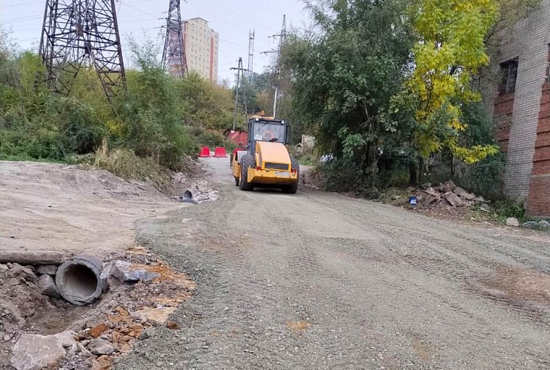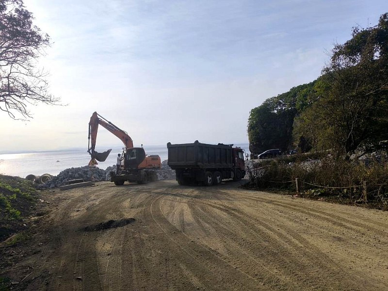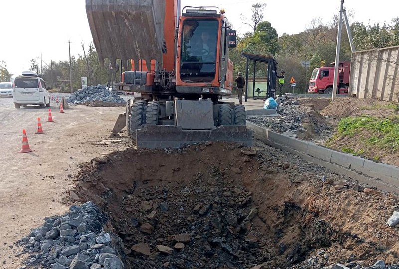 На улице Якорная бухта (проезд к детскому лагерю «Маяк») велась разработка грунта под кюветы и трубопроводы, устройство основания из скальника и его уплотнение.