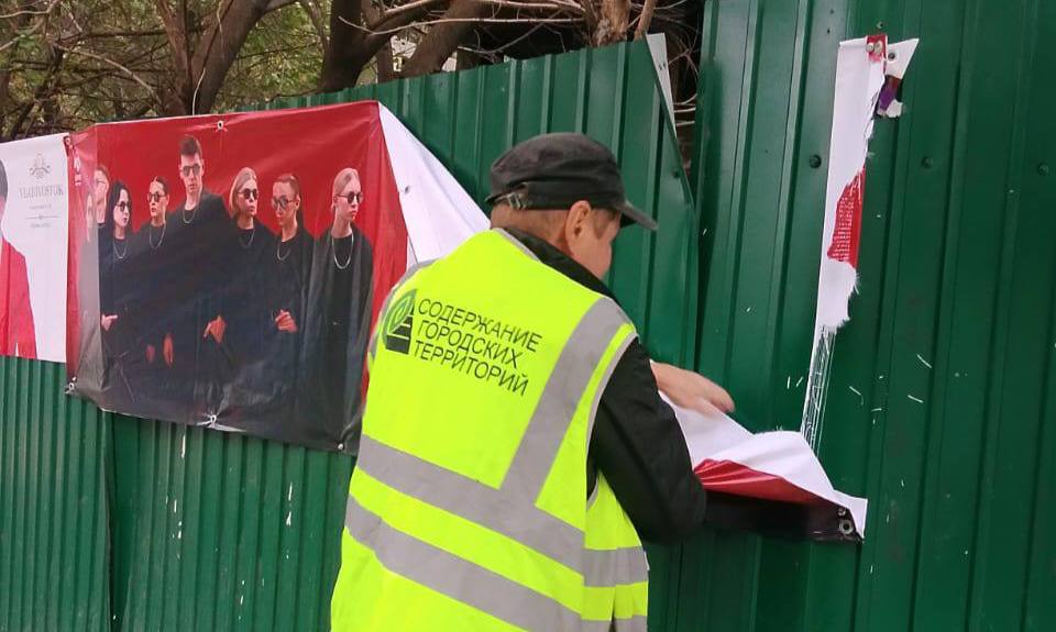 Санитарные службы выполняют уборку мусора, прометание и мойку остановок, а также удаляют несанкционированную рекламу по всем районам города.