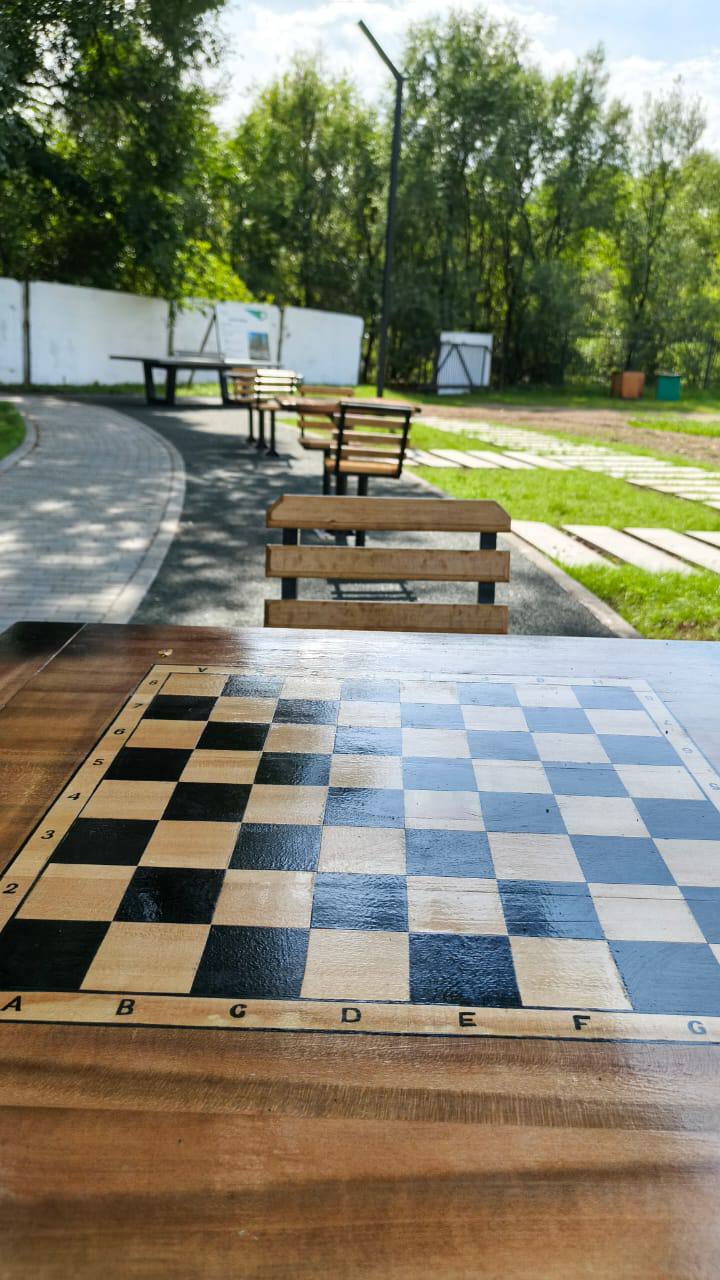 В «Зоне отдыха" появился объект в виде милой гусеницы, который станет интересным элементом для детей и внесет яркие акценты в ландшафт, а шахматные столы, создают возможность для умственного досуга.