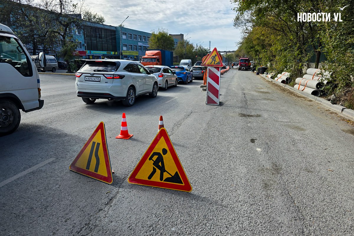 Район Снеговой во Владивостоке с конца лета стоит в пробках. Тяжёлая ситуация сложилась из-за замены трубопровода к военной части, для которой раскопан участок дороги, а осложнила её замена теплотрассы. Работы с трубопроводом должны были закончить в конце сентября, но теперь сроки сдвинулись на 20 октября, а на теплосетях они сделаны на 90%.