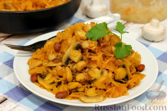 Тушеная капуста с грибами и фасолью