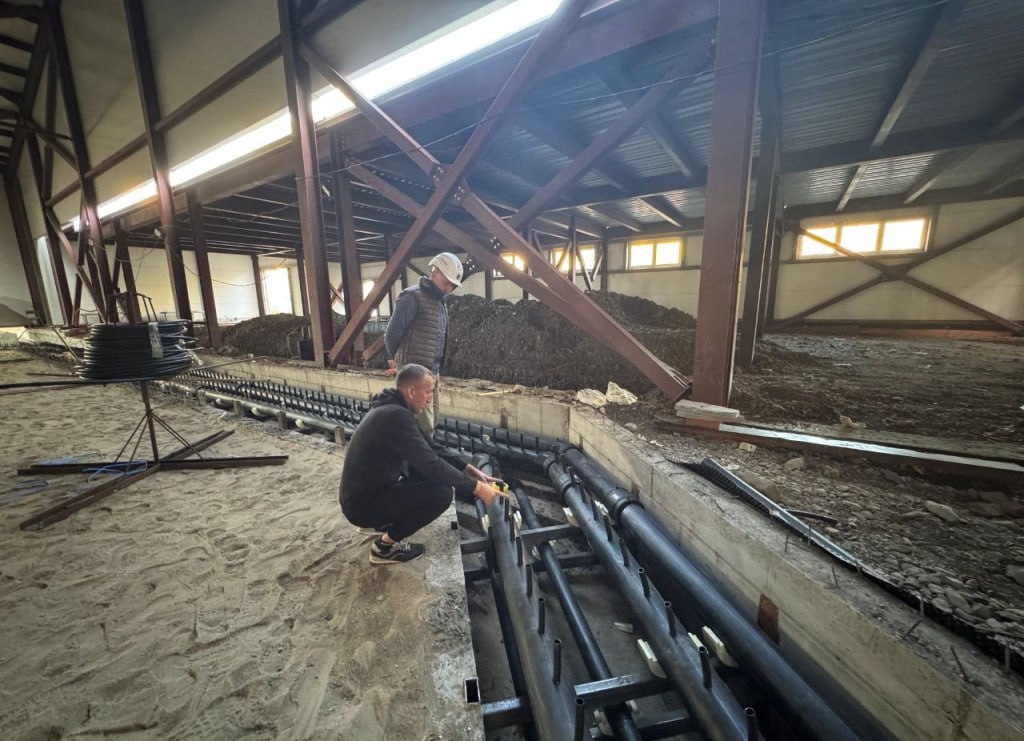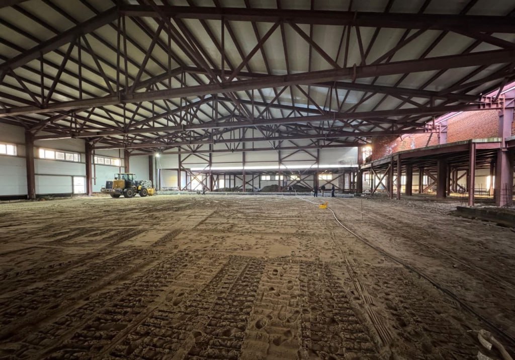 Строительство возобновили после устранения недочетов и корректировки сметы. Рабочие приступили к устройству покрытия с системами обогрева и охлаждения