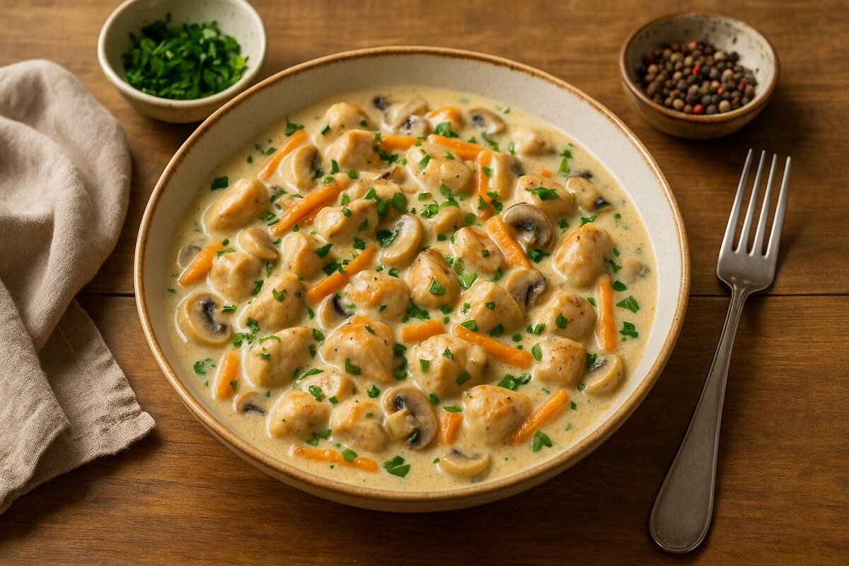 Жаркое — традиционное блюдо, которое всегда радует сытностью. Однако иногда такая тяжесть может вызывать усталость. Альтернативой может стать фрикасе: это легкое, изысканное и замечательное блюдо, способное преобразить любой семейный ужин. Сочетание куриного мяса, свежих овощей и сливочного соуса делает фрикасе вкусным и лёгким, даря ощущения праздника даже в будни, сообщает Дзен-канал "Кулинарный беспредел".
