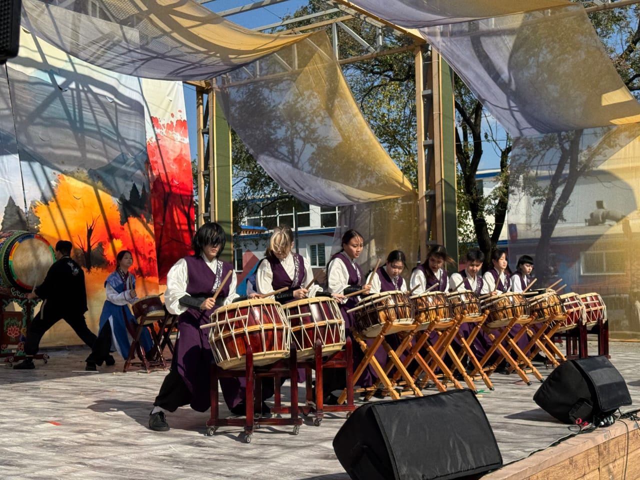 Концертная программа погрузила гостей в уникальную атмосферу Кореи: мощные ритмы традиционных барабанов сменились лирическими народными песнями и изящными танцами с веерами.