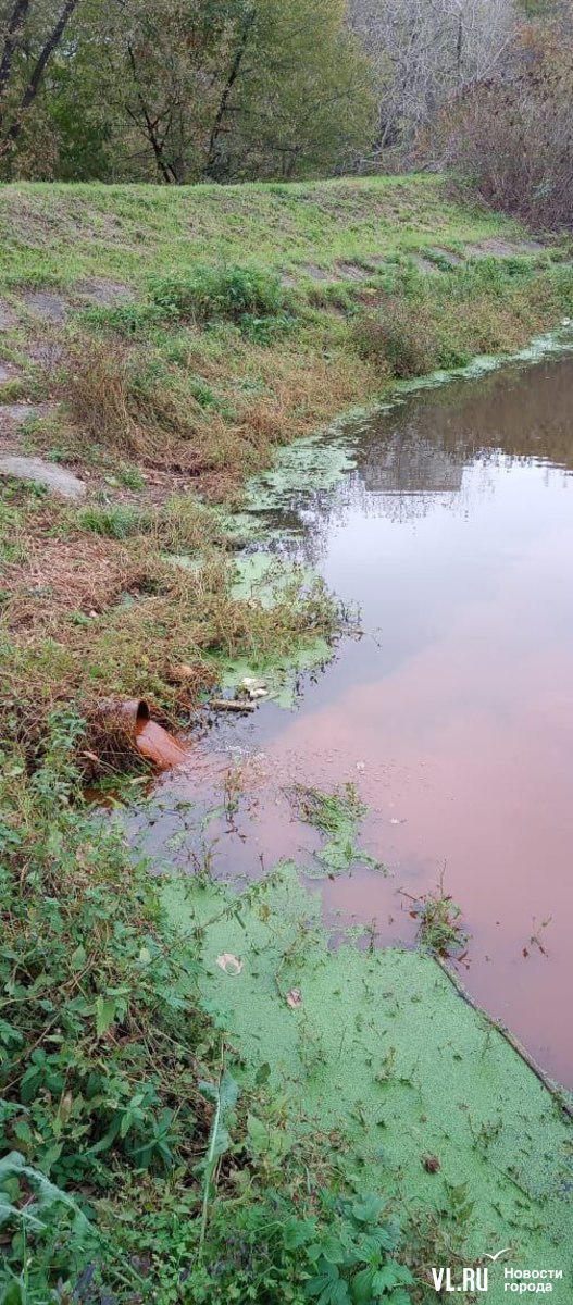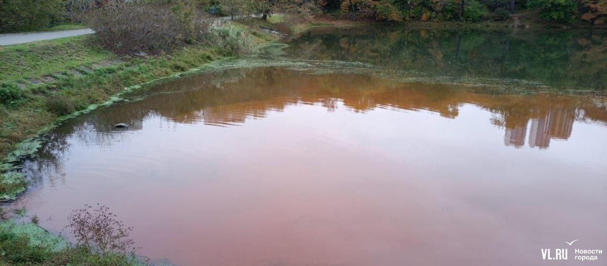 Во вторник, 14 октября, одно из озёр в парке Минного городка на стала заполнять рыжая жидкость. На глазах у гуляющих верхнее озеро сменило цвет, при этом жидкость была без запаха и вытекала с противоположной стороны от места, где идёт реконструкция парка. В Примводоканале признались, что сброс воды выполнили во время ремонта водопровода, ведущего к соседним жилым домам. Оранжевый цвет тоже объясним – труба в парке повреждена коррозией, и напор попросту его обмыл.