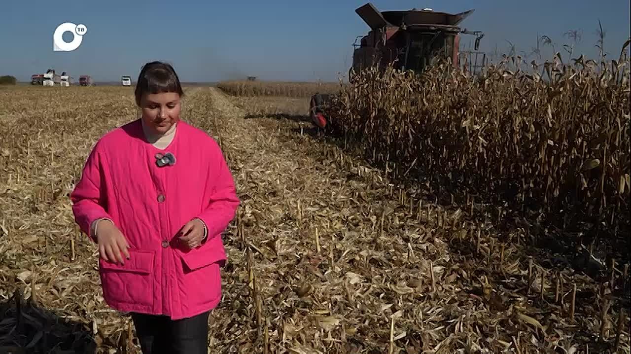 На полях работает 11 комбайнов, которые ежедневно обмолачивают до двух тысяч тонн зерна. Собранную кукурузу доставляют на элеватор для сушки и очистки.