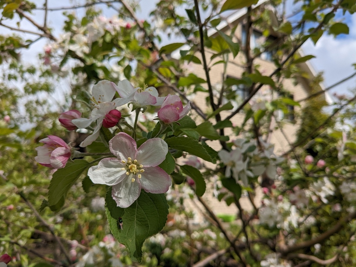 На улице царит весеннее вдохновение, и в этом году День Победы озаряет особое событие — распускание великолепной яблони, именуемой "Слава Победителям". Эта белоснежная красота словно сверкает на фоне насыщенно-синего неба, привнося торжественность и радость в обойму праздника.