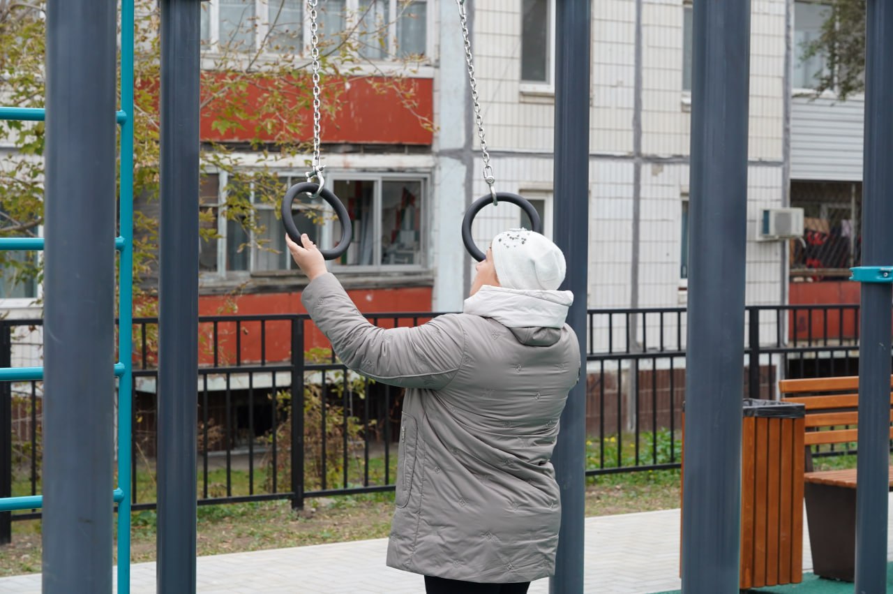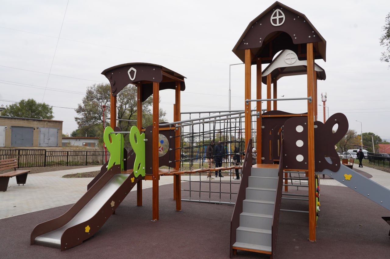 Для детей установили игровые площадки, рассчитанные на разные возрастные категории: от 3 до 7, от 7 до 12 и спортивную ворк-аут зону для ребят от 12 лет. Также на территории есть качели, лавочки и урны.
