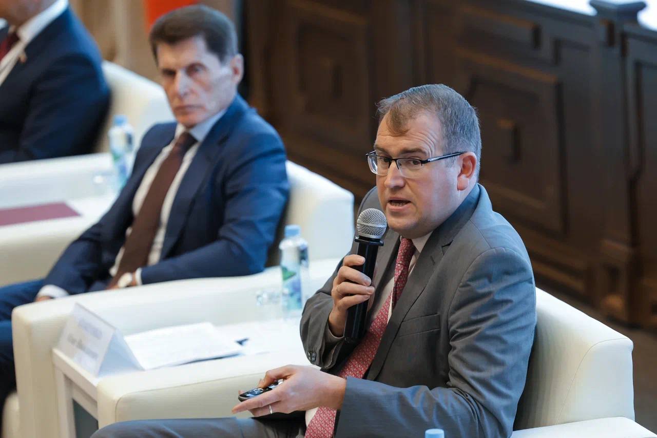 Председатель Комиссии Общественной палаты Российской Федерации по территориальному развитию, городской среде и инфраструктуре, руководитель Союза российских городов Андрей Максимов принял участие в пленарном заседании Дальневосточного паркового форума по благоустройству.