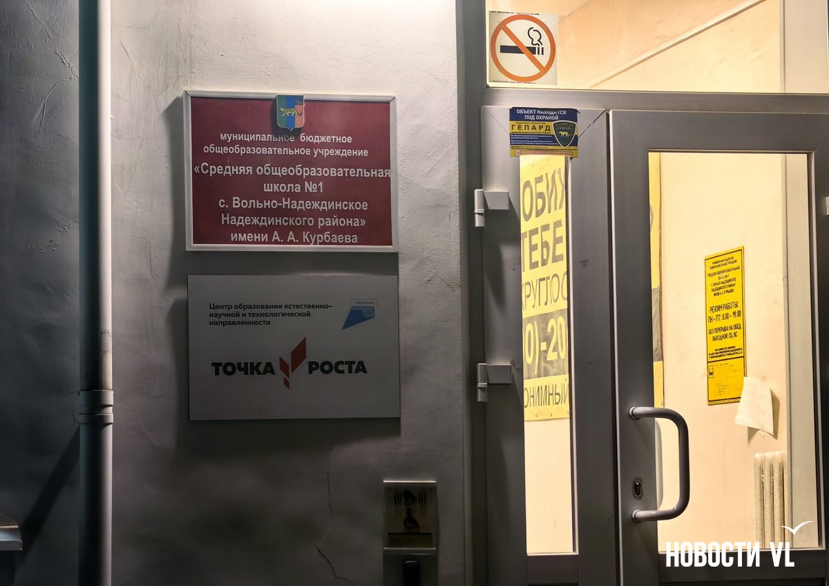 Прокуратура взяла на контроль вопрос отсутствия электроснабжения в школе №1 села Вольно-Надеждинское. Именно в этой школе в прошлом году обрушилась пристройка, а теперь возникли проблемы с электричеством. Теперь в ней уже несколько дней нет света, и дети подсвечивают себе тетрадки фонариками телефонов.