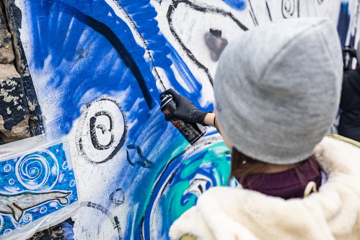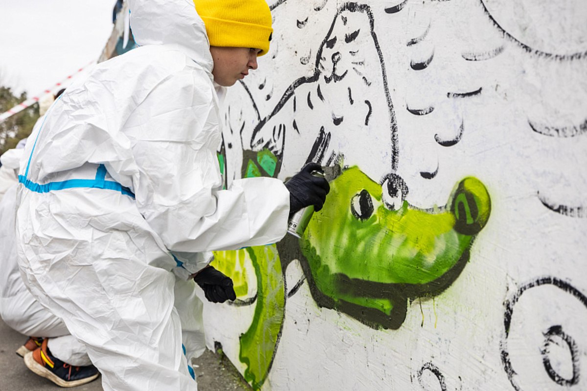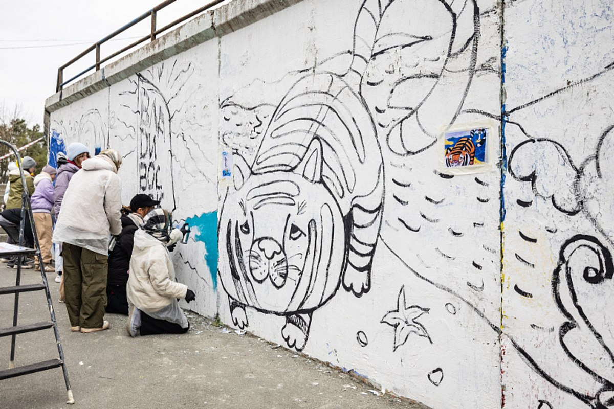 На подпорной стене на улице Верхнепортовой, рядом с «Концерт Холлом», появился новый мурал. В его основу легли рисунки учащихся детской художественной школы № 1. Теперь на стенке изображены тигр и морские обитатели.