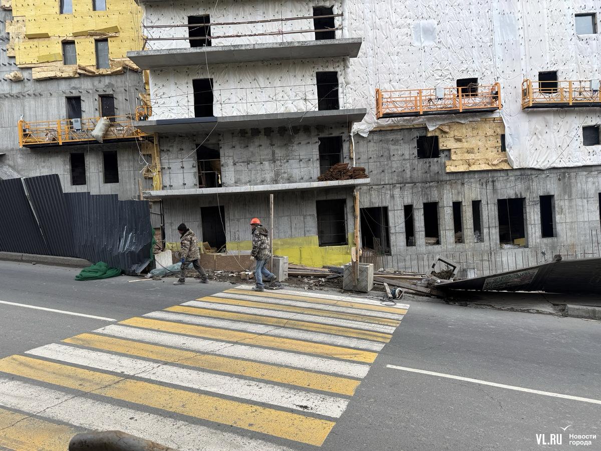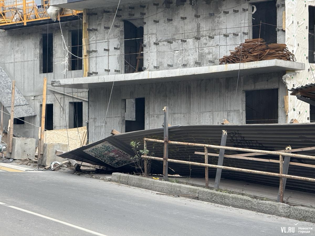 Во Владивостоке ветер повалил забор стройки жилого комплекса на Невельского, который одновременно является стенкой наземного пешеходного прохода между ней и проезжей частью и ведёт к зебре. Также пострадала часть крыши этого прохода. Теперь короткий путь, по которому можно было подняться со Спиридонова на Невельского, закрыт. Пока идут восстановительные работы, этот участок дороги нужно обходить через три светофора. Рабочие уже поднимают упавшие забор и крышу и укрепляют их, чтобы не упали снова.