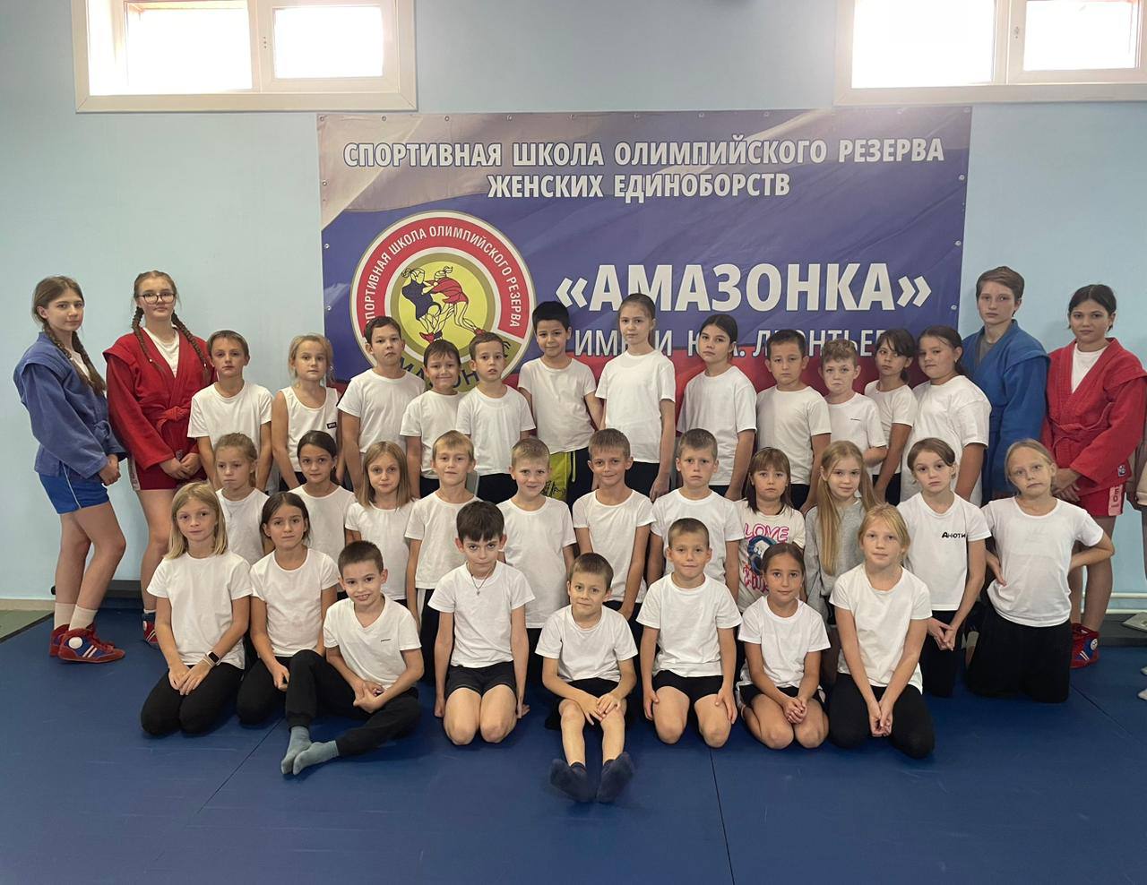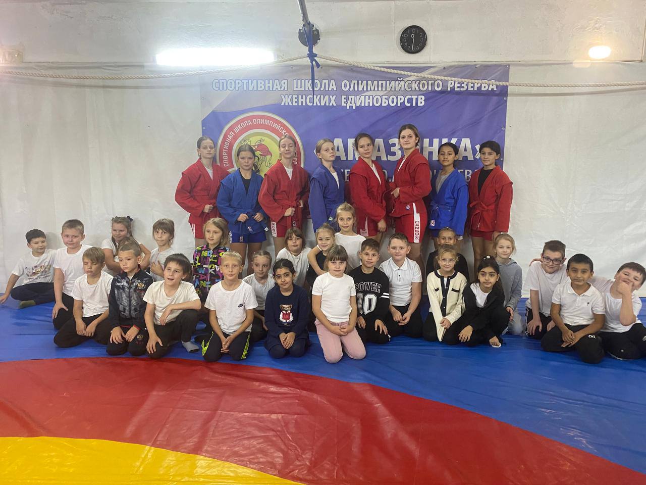 Воспитанницы спортивной школы олимпийского резерва «Амазонка» - имени Ю.А. Леонтьева» выступили перед учениками с яркой показательной программой, включающей приёмы борьбы в самбо, а также продемонстрировали несколько специальных упражнений.