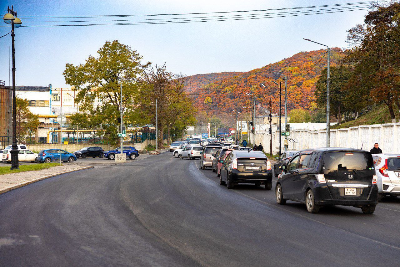 Саму улицу Адмирала Горшкова комплексно ремонтируют в рамках мастер-плана развития города. За счёт средств специального казначейского кредита здесь благоустраивают пешеходные зоны, расширили выезд на объездную трассу Седанка – Патрокл, перенесли опоры уличного освещения и отремонтировали проезжую часть. Основные строительные работы подходят к концу. Дорожникам осталось восстановить благоустройство, нанести разметку, переустановить светофоры.