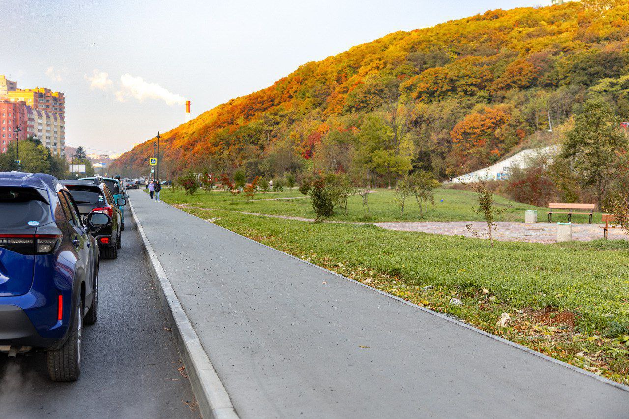 Этим летом силами муниципальной службы «Содержание городских территорий» на данном участке были также отремонтированы пешеходные дорожки на участке от поворота к ЖК «Изумрудный» до перекрёстка Русская – Бородинская – Адмирала Горшкова.