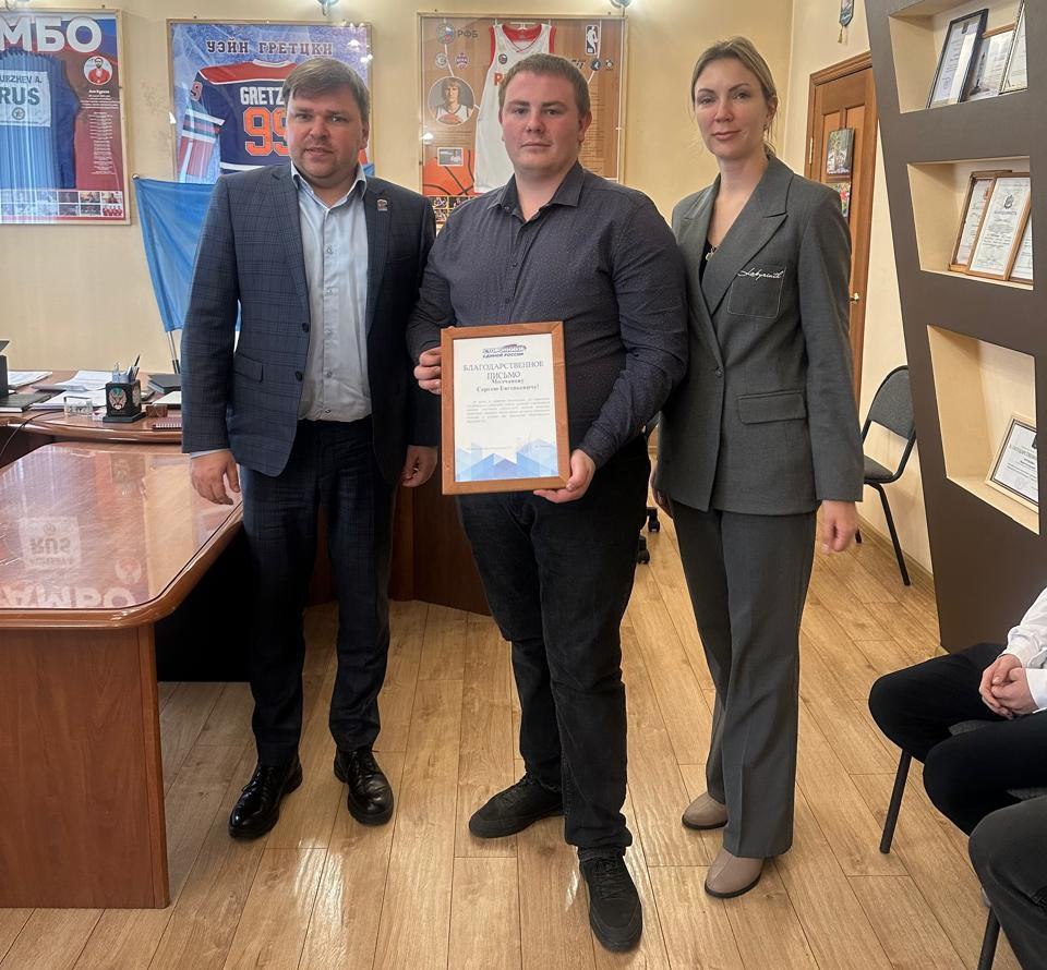 В рамках встречи сотрудникам УПТС, которые являются активистами движения «Сторонников», были вручены благодарственные письма. Они были отмечены за значительный вклад в развитие волонтёрского движения на территории округа, оказание гуманитарной помощи участникам СВО, а также пропаганду патриотизма. Награды получили Сергей Киселев, Андрей Мещеряков, Сергей Молчанов и Мердан Крупко. Церемонию награждения провели почётные гости мероприятия и председатель совета «Сторонников» УГО, заместитель генерального директора АО «УПТС» Иван Мурченко.
